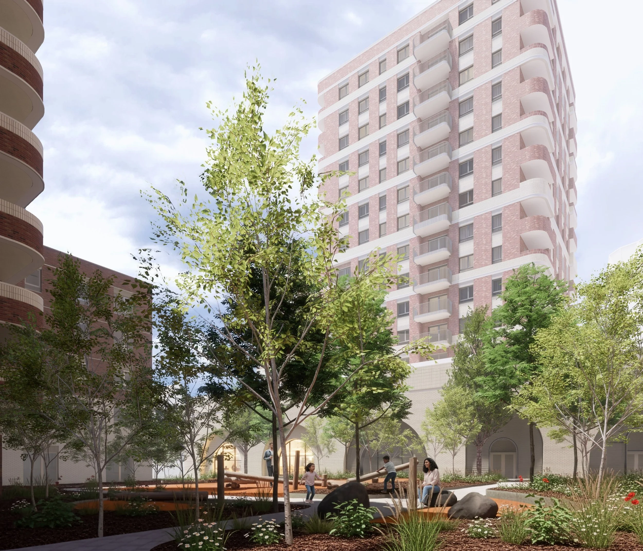 Building heights and massing were reviewed and refined to create a more balanced relationship with nearby streets and public spaces.