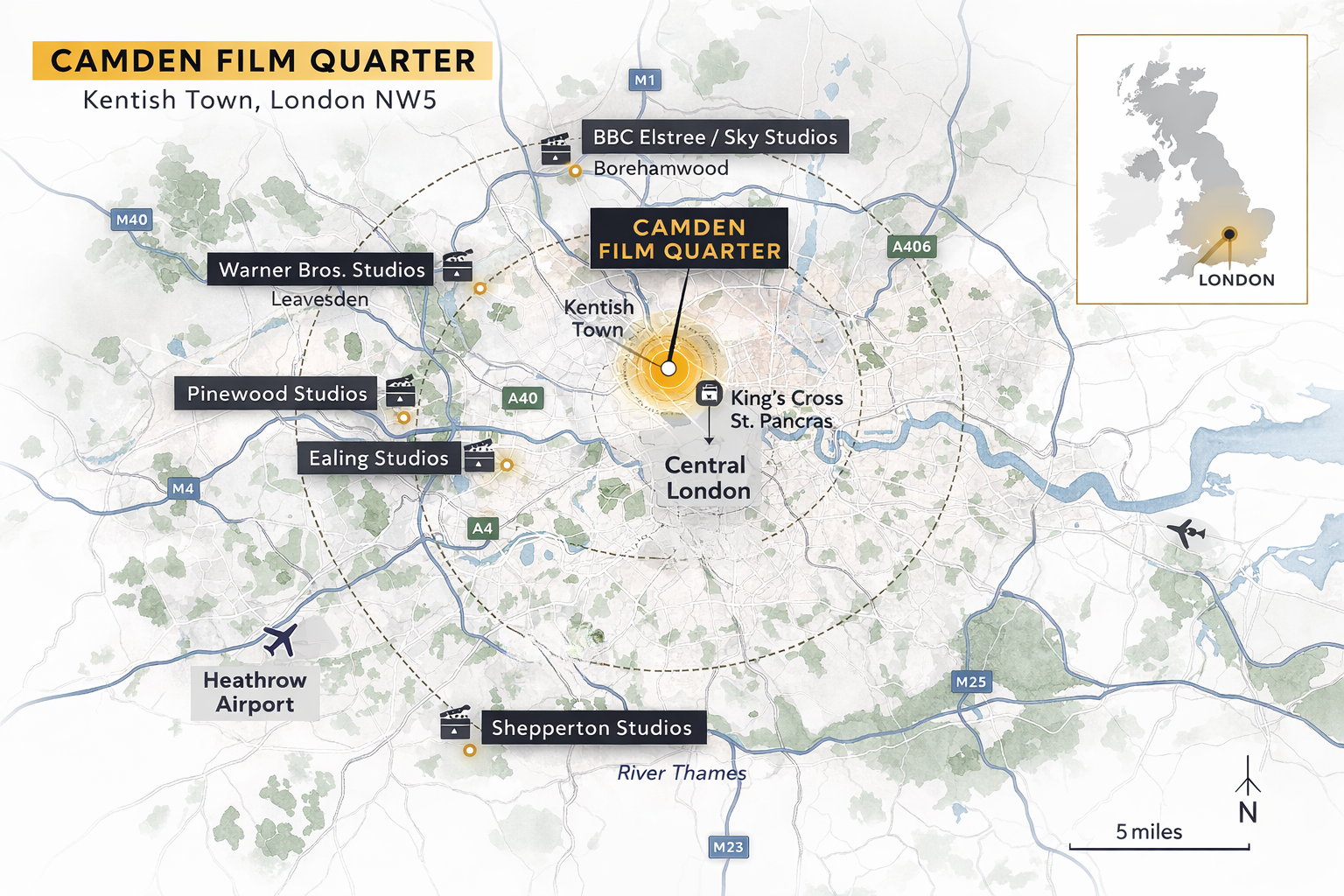 Camden Film Quarter seeks to address this gap by creating London’s first purpose-built urban film and television production district, integrating studios directly within the capital’s creative economy.